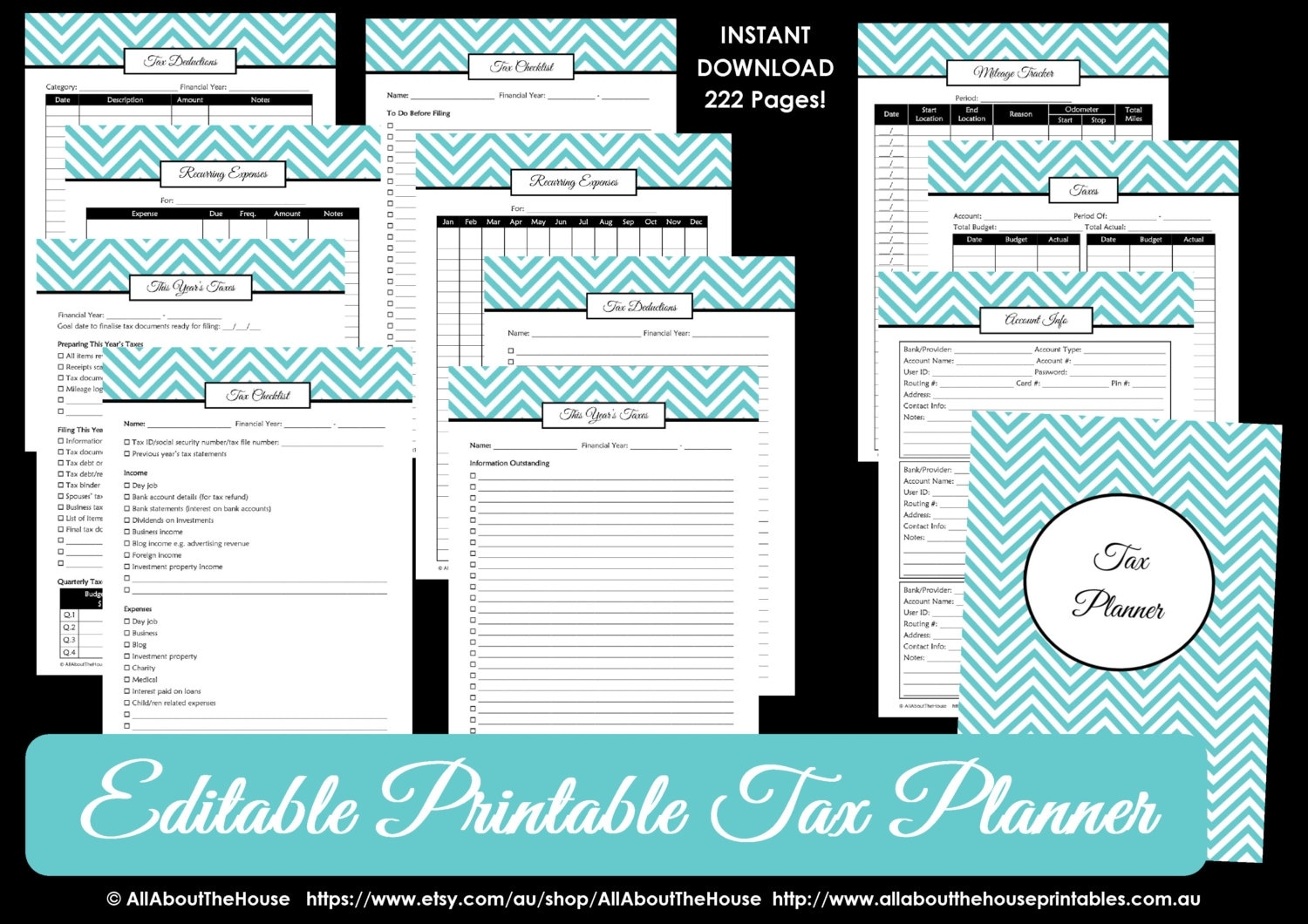 EDITABLE LIGHT BLUE Tax Planner Printable Organizer Household Binder Cover Chevron Template Finance Money Management Tool Tabs Editable Pdf Etsy