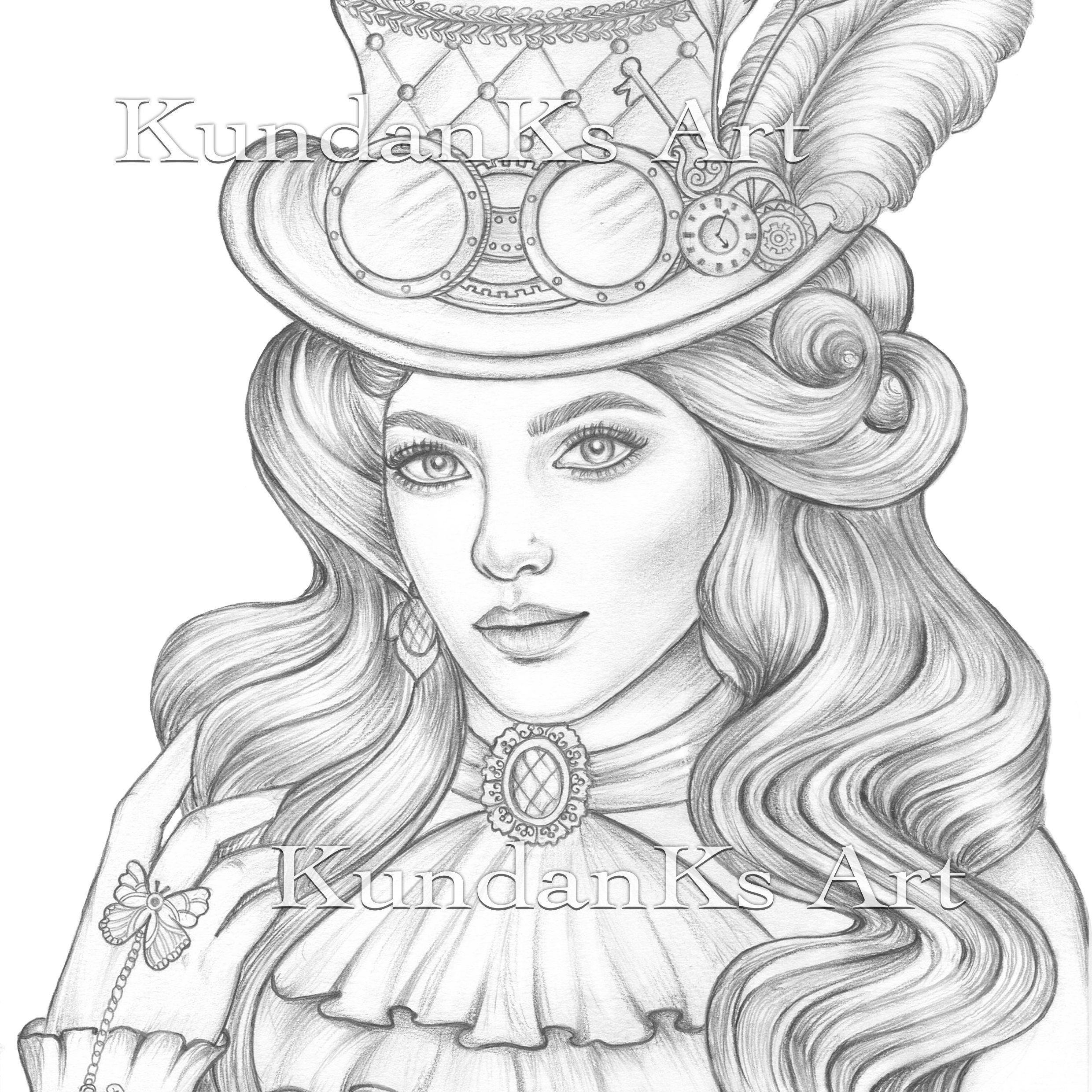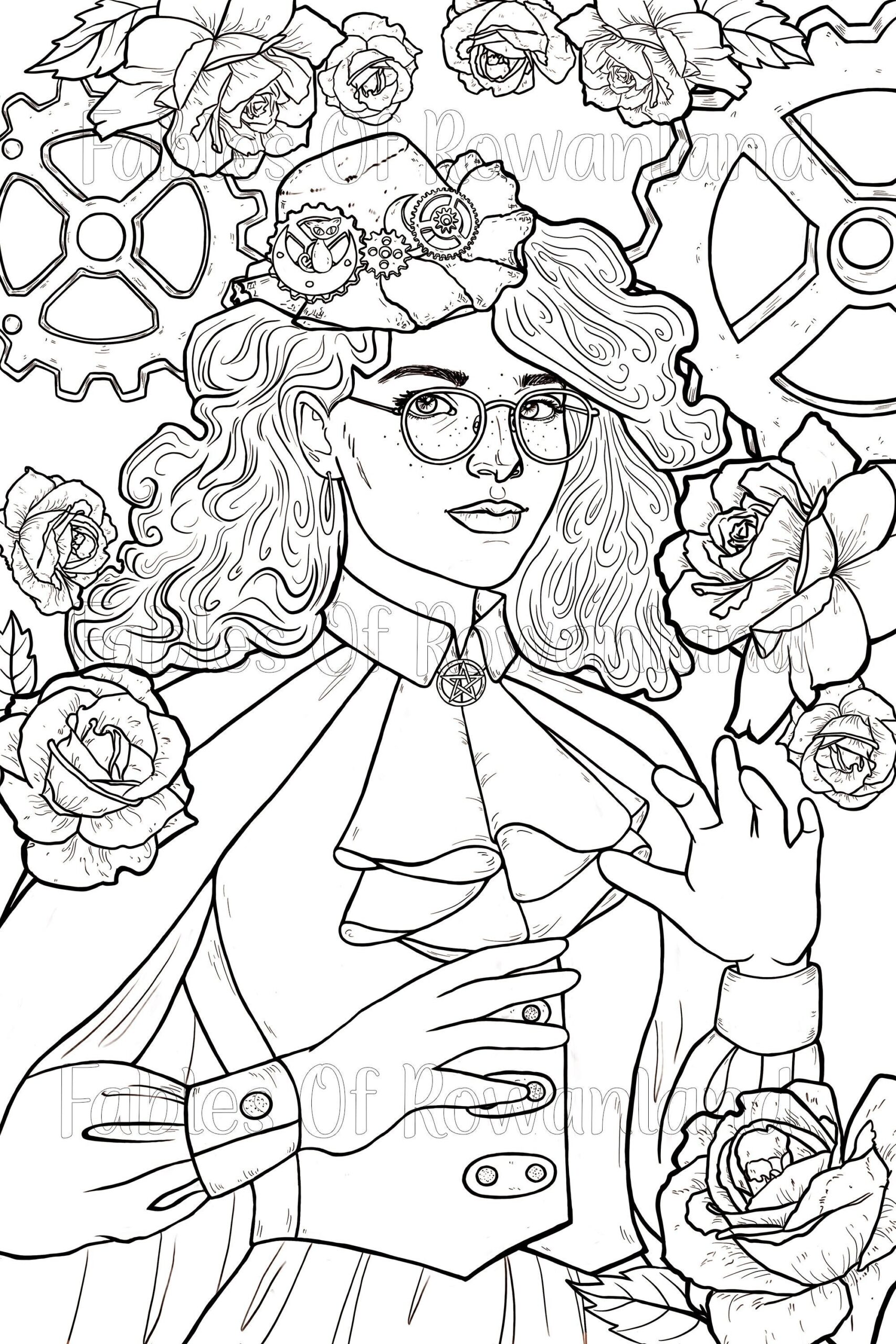 Steampunk Anna Steampunk Adult Coloring Pages Premium Coloring Pages line Art Grayscale Page instant Download A4 A3 Printable Etsy