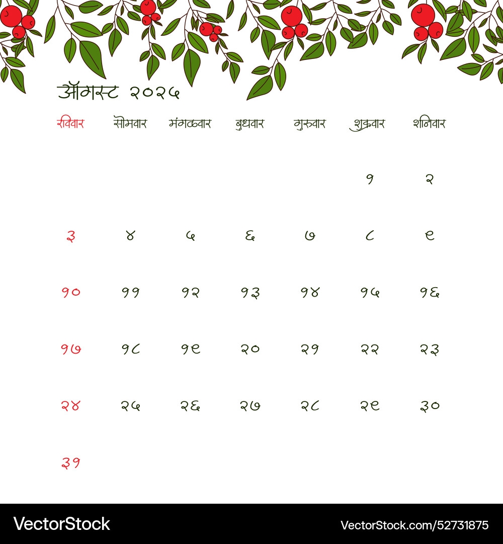 Hindu Calendar 2025 August
