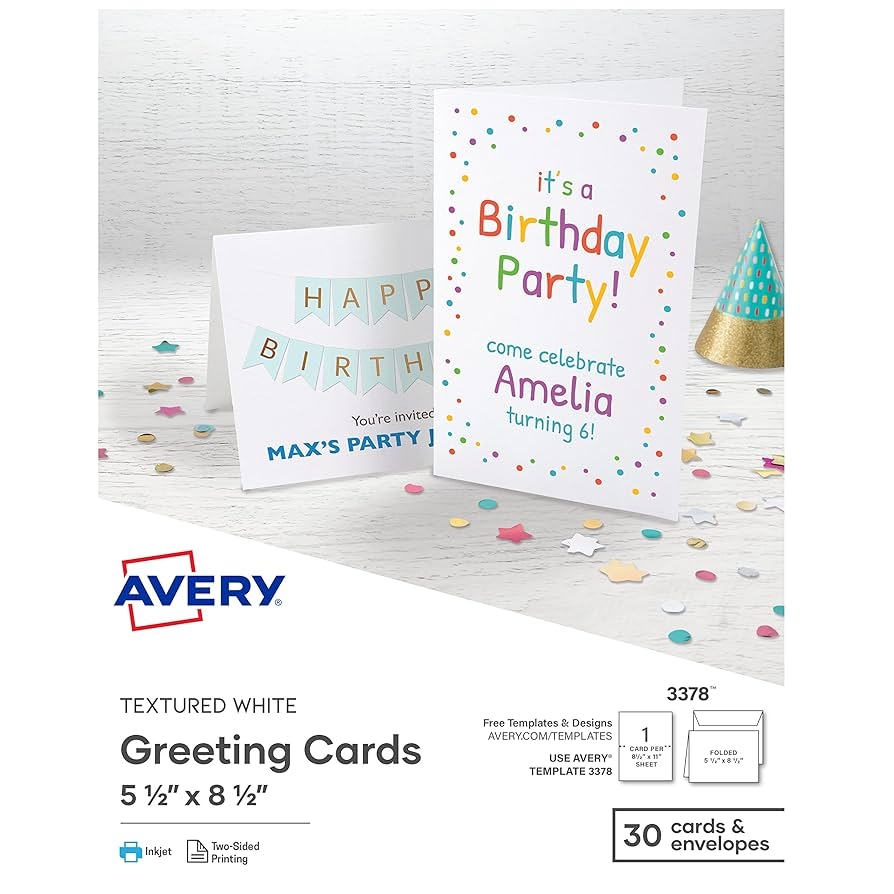 Amazon Avery Printable Greeting Cards Half Fold 5 5 X 8 5 Textured White 30 Blank Cards With Envelopes 3378 Blank Greeting Cards Inkjet Printer Office Products