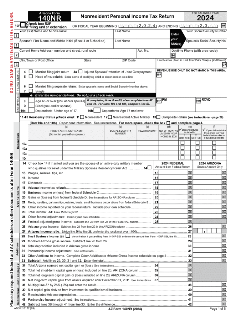 2024 Form AZ DoR 140NR Fill Online Printable Fillable Blank PdfFiller