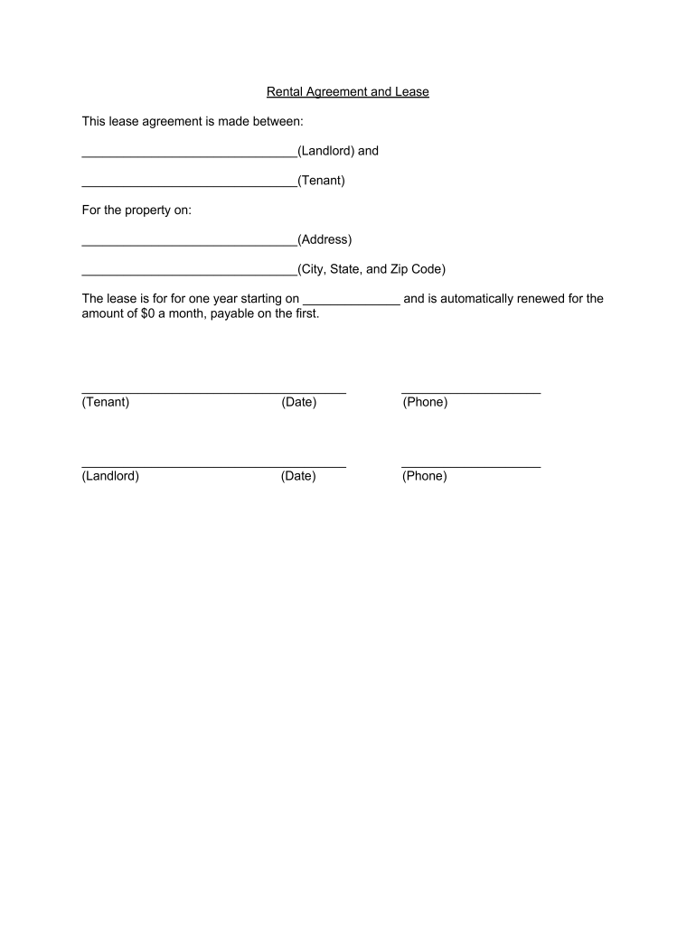 Free Simple 1 Page Lease Agreement Template PDF Word