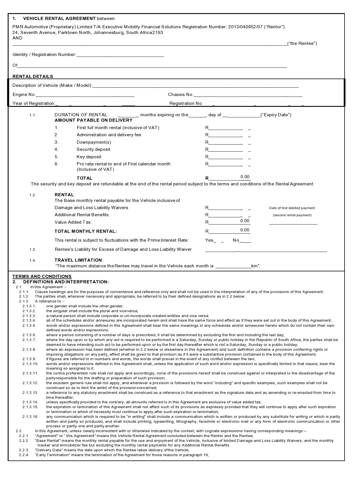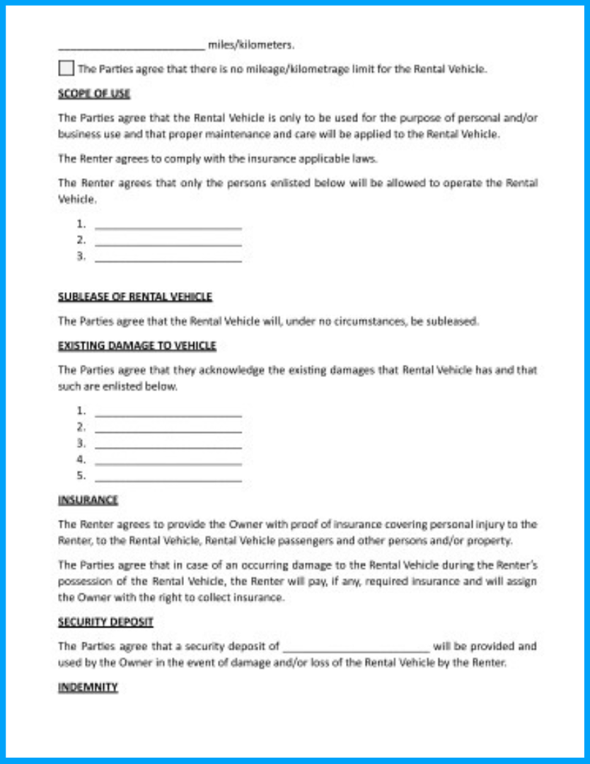 Editable Vehicle Rental Lease Agreement Car Rental Agreement Lease Agreement car Renting Contract Etsy