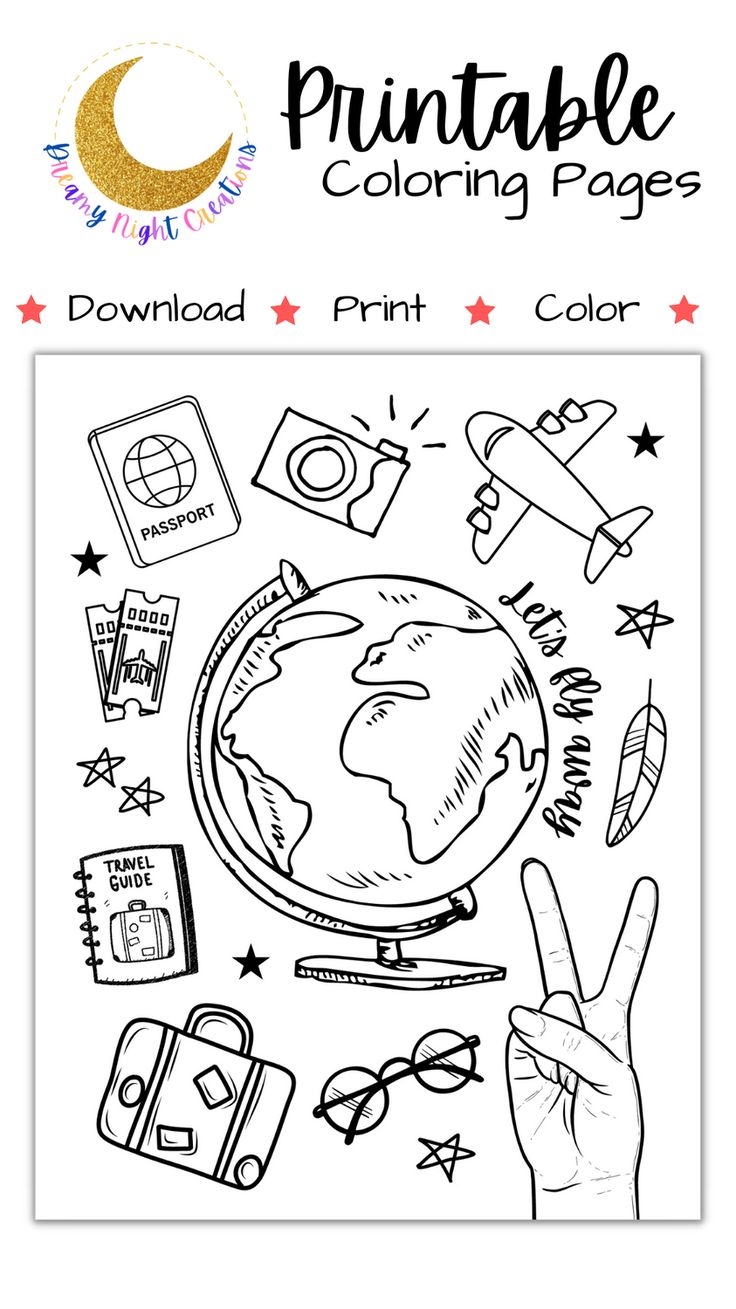 Printable Travel Coloring Page Vacation Coloring Page For Kids And Adults
