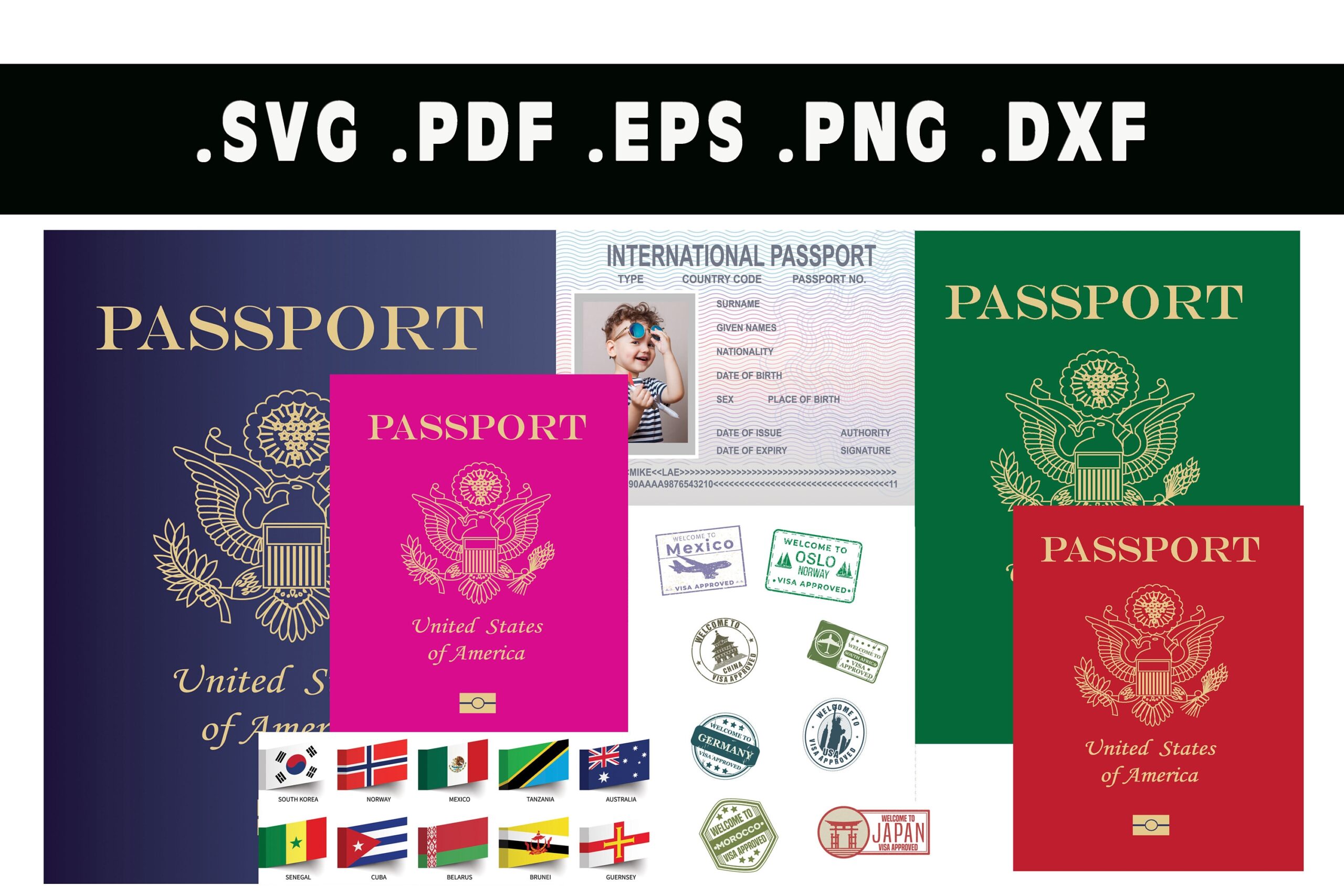 Printable Pretend US Passport With Stamps Visas And World Flags USA Passport Vector Silhouette Cricut File Clipart Cuttable Design Svg Etsy