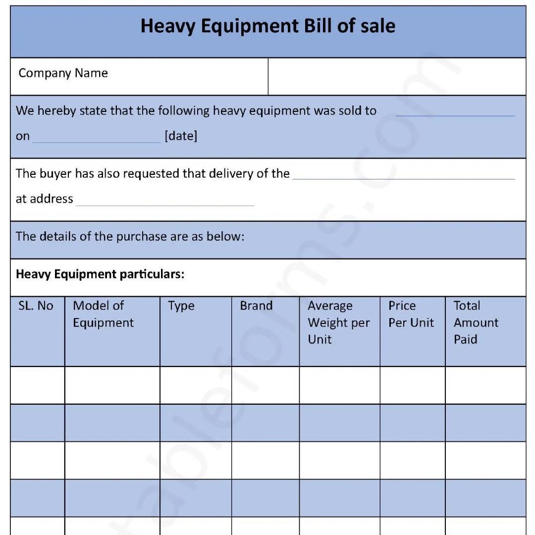Free Equipment Heavy Farm Bill Of Sale Template PDF Word