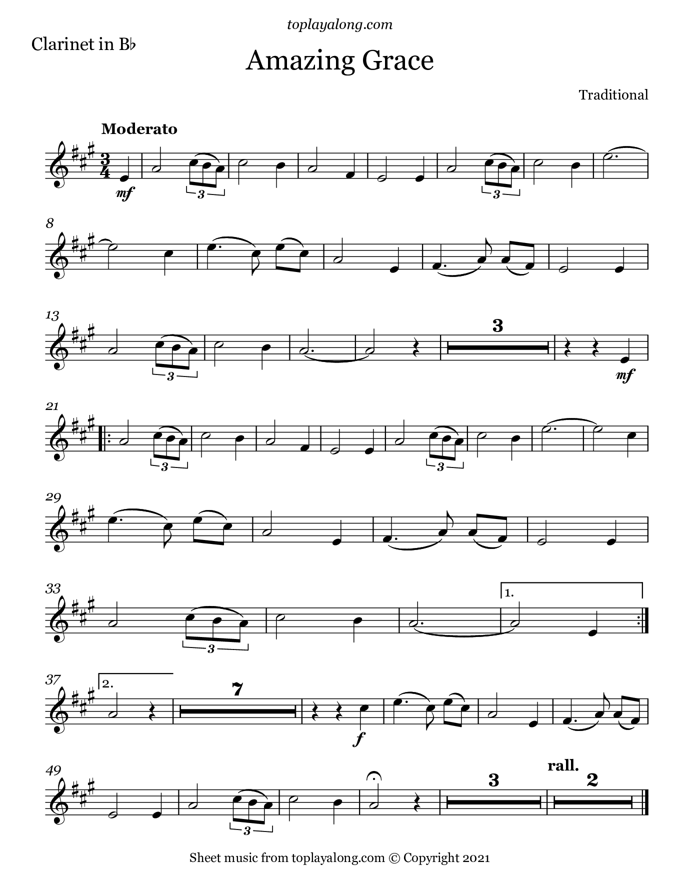 Amazing Grace For Clarinet Free Sheet Music For Clarinet 8notes