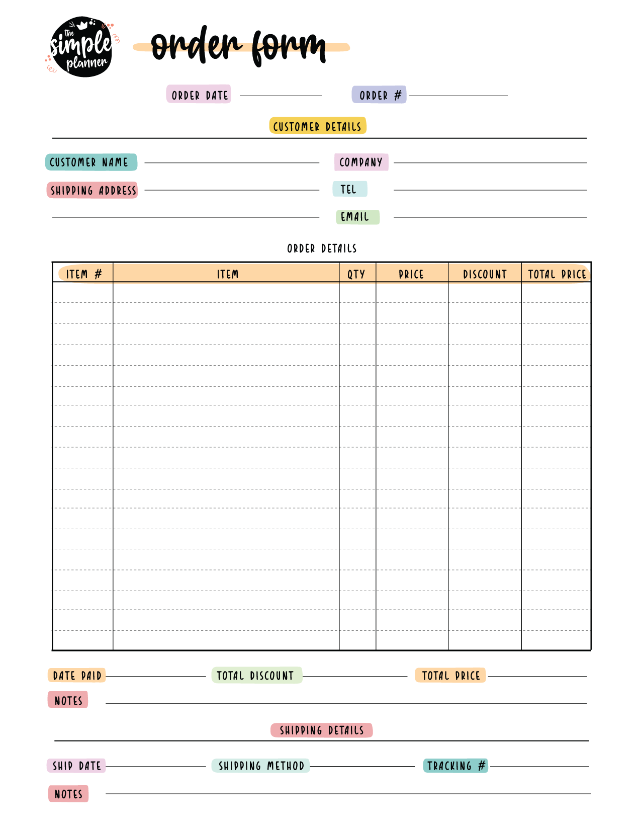 These templates are user-friendly and customizable, making it simple for you to input all the necessary details for each order. Say goodbye to messy handwritten orders and hello to organized and professional-looking forms!