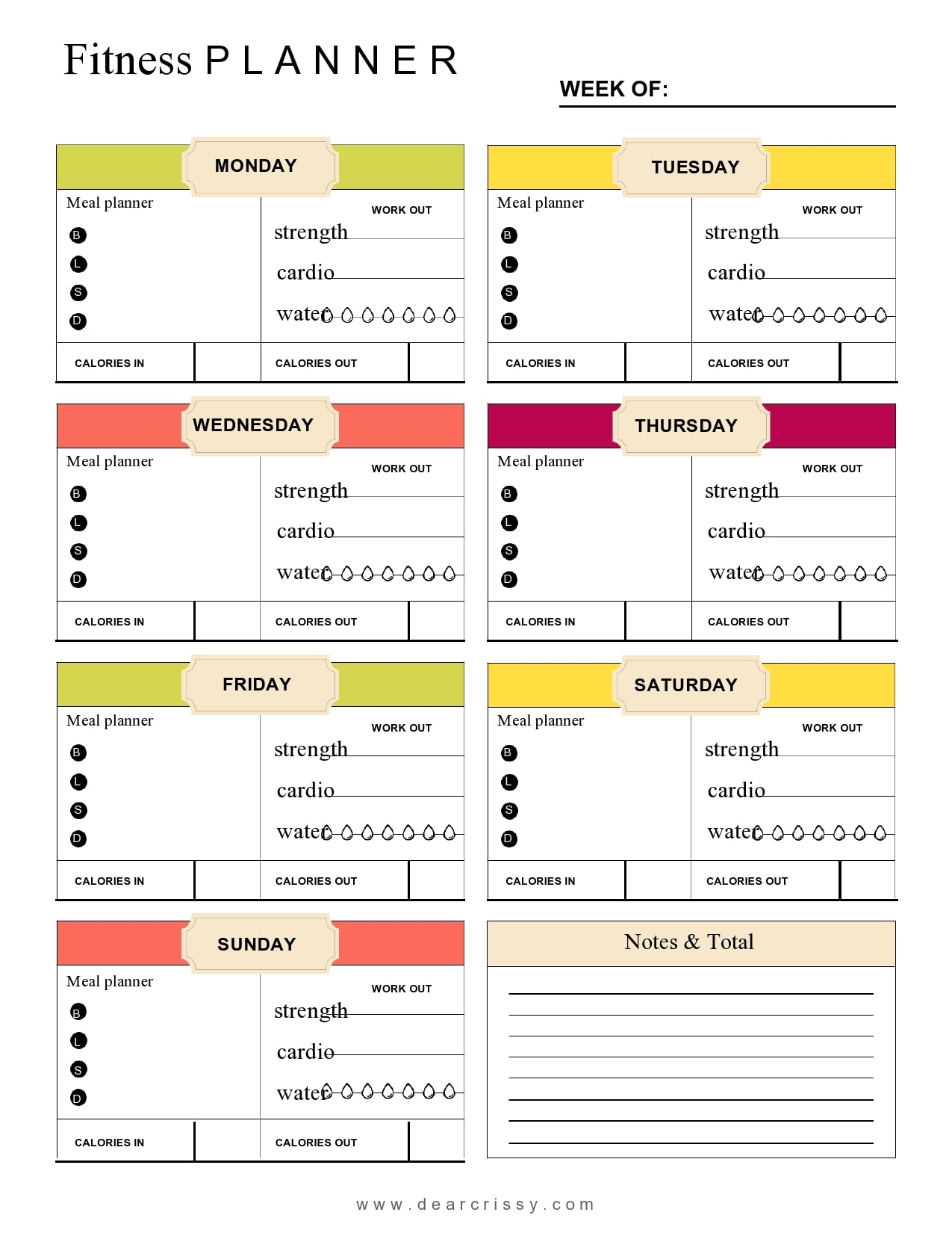 Free Printable Fitness Journal Template