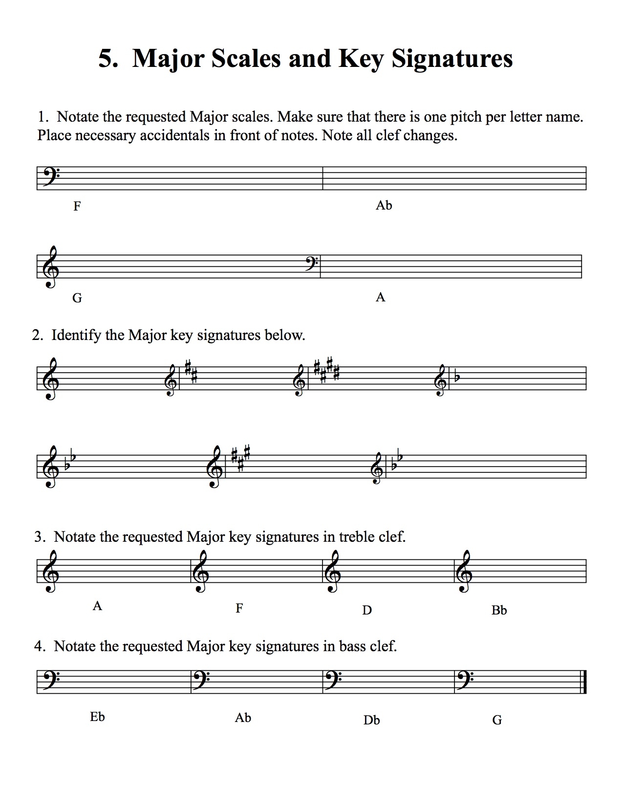 Free Printable Key Signature Worksheets