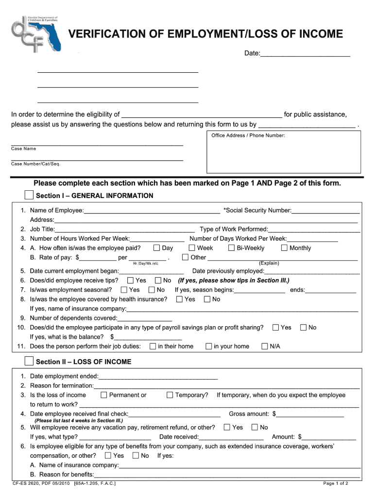 2010 2025 Form FL DCF CF ES 2620 Fill Online Printable Fillable Blank PdfFiller