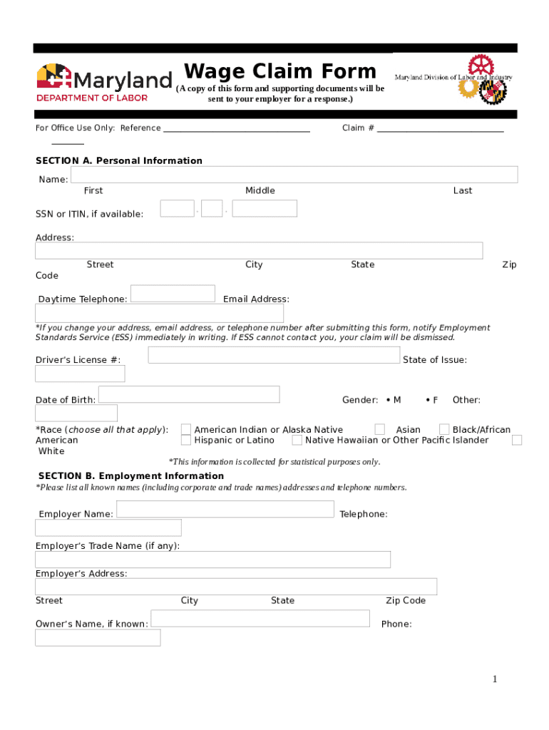 Free Printable Loss Of Wages Form