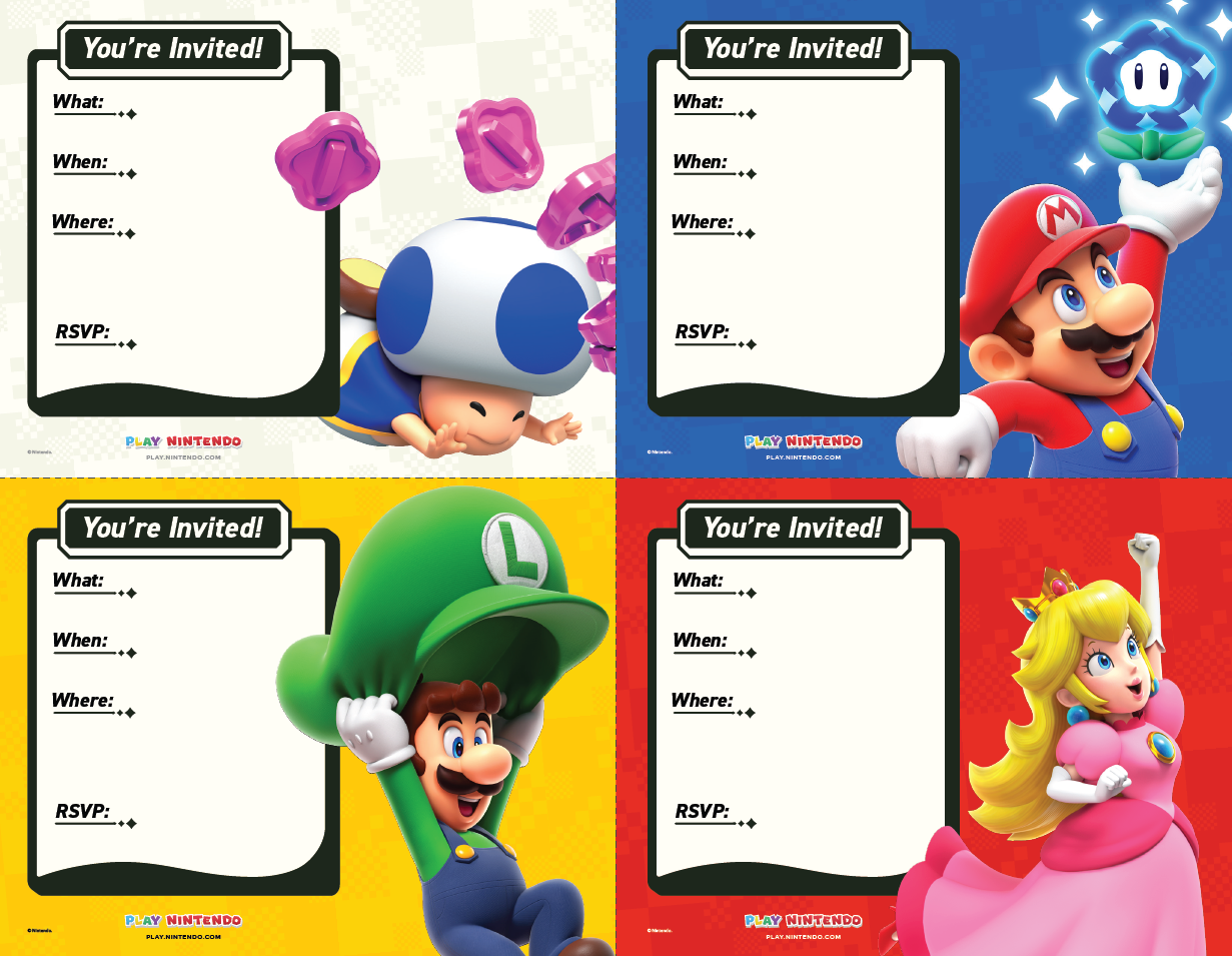 From Mario to Zelda, we have a variety of Nintendo-themed invitations to choose from. Simply download and print as many copies as you need, and you’re all set to start inviting your friends and family to the party of the year!