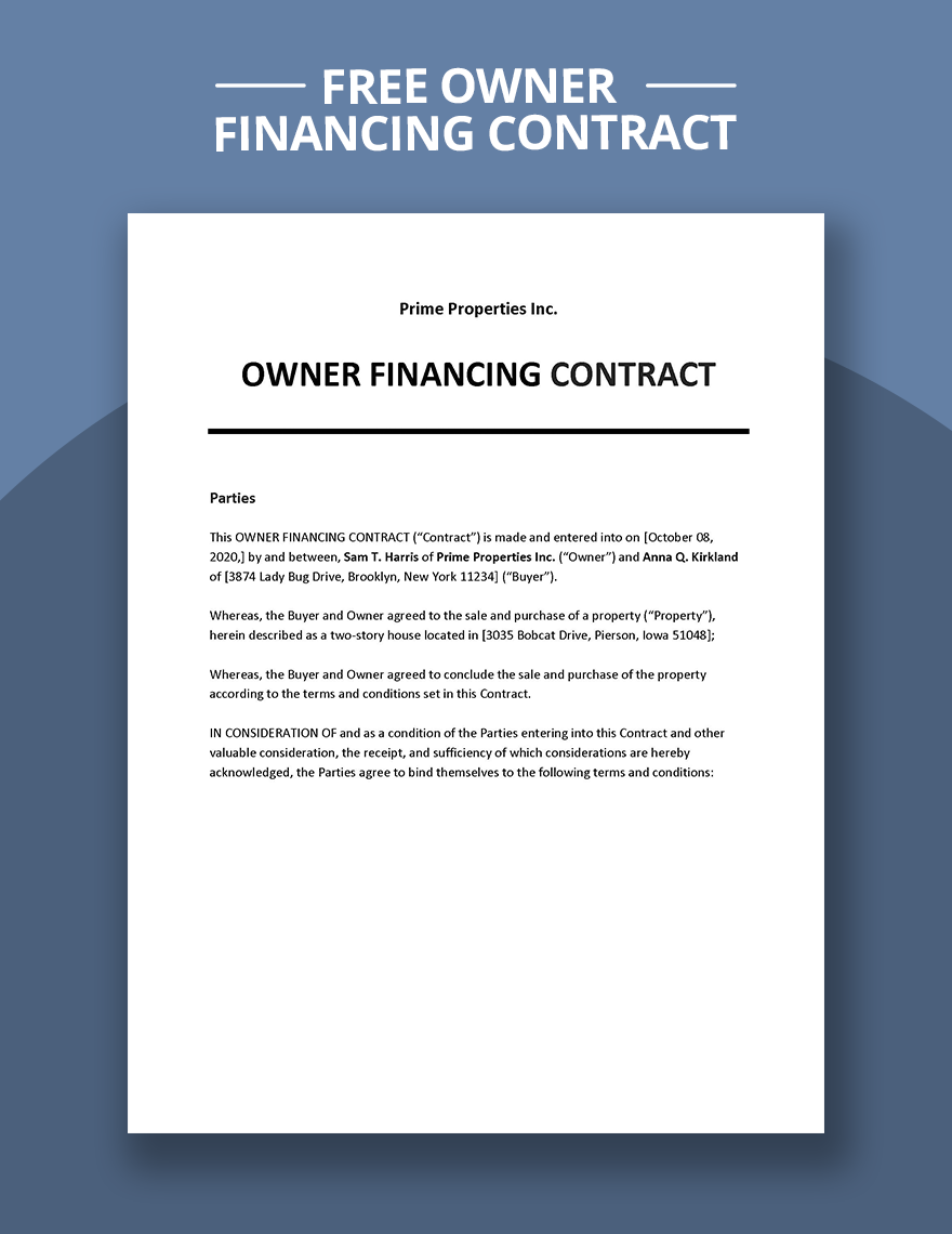 Owner Financing Contract Template In Word Pages Google Docs Download Template