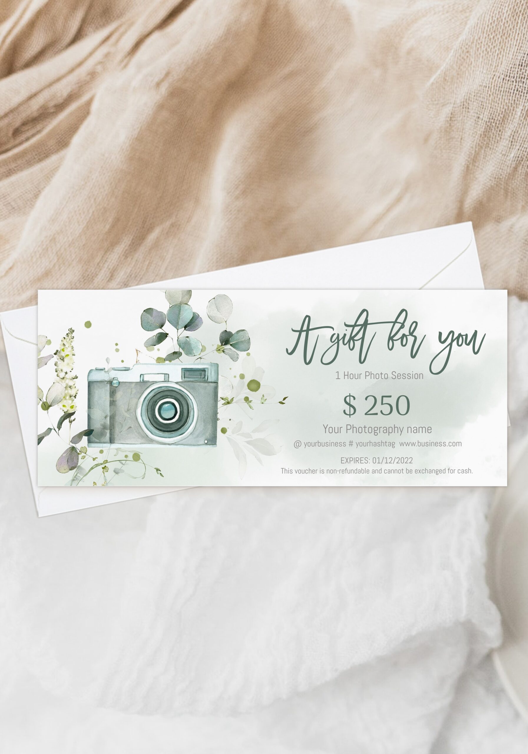 Modern Editable Gift Certificate Template Photography Printable Marketing Certificate Photography Gift Voucher Photo Session Voucher Card Aoleta