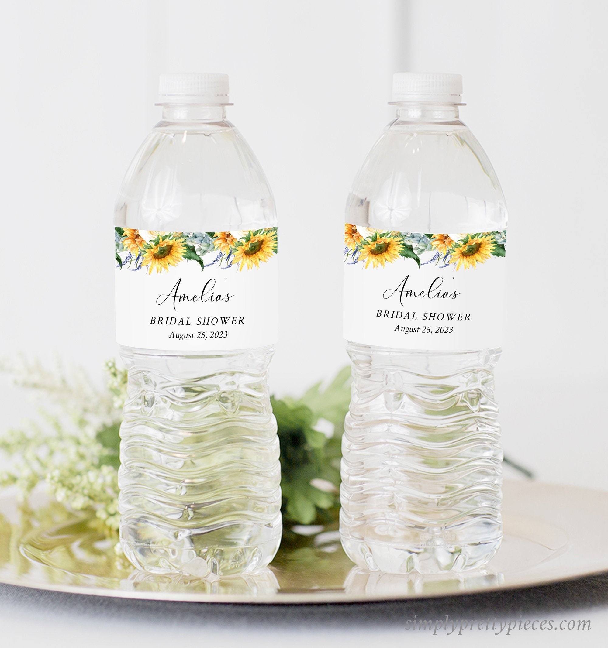 Sunflower Editable Water Bottle Labels Yellow Floral Eucalyptus Water Bottle Label DIY Template Printable Label Instant Download 565 A Etsy