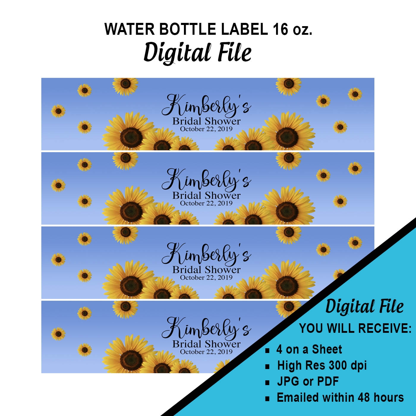 Printable OR Printed Sunflower Wedding Water Bottle Labels Rustic Yellow Sunflower Customized Water Bottle Labels Personalized 0019 A Etsy