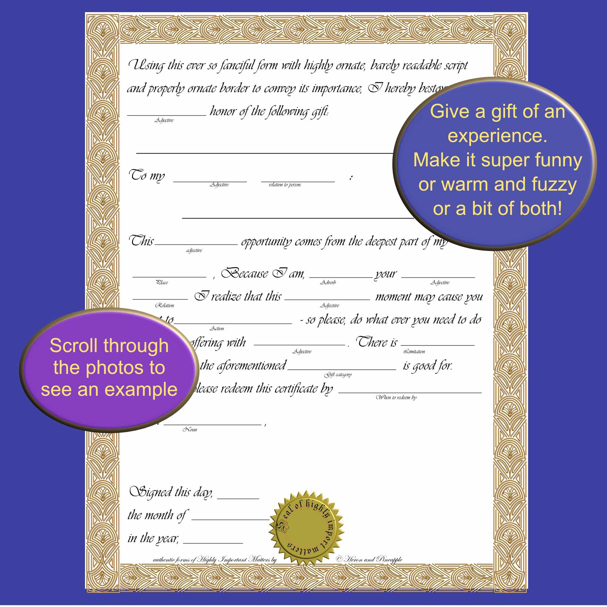 Mad Lib Styled Blank Gift Certificate Funny Or Warm And Fuzzy