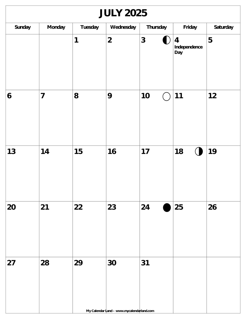 Make the most of your month with our July 2025 calendar printable. Whether you’re a busy professional, a student with a packed schedule, or a parent juggling multiple responsibilities, having a printable calendar can help you stay on top of your commitments and make the most of your time. Download your calendar now and start organizing your month!