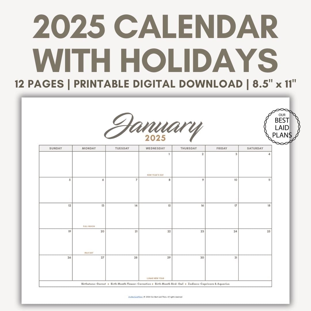 Don’t wait until the last minute to start planning your year. Get your hands on our Monthly Calendar 2025 Printable With Holidays today and take the first step towards a more organized and stress-free life. You’ll wonder how you ever lived without it!