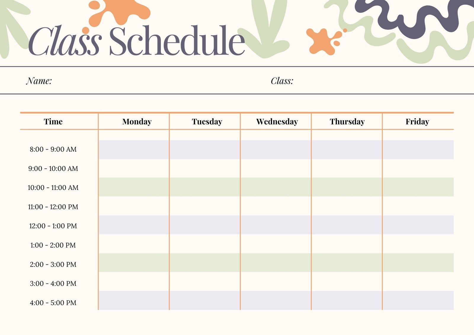 Free Printable Class Schedule Templates To Customize Canva