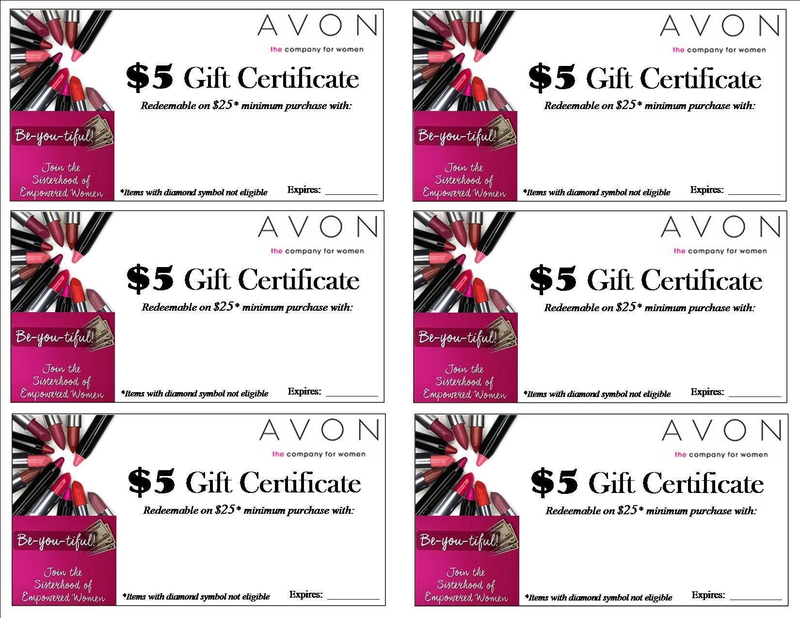 Printable Avon Gift Certificate Template