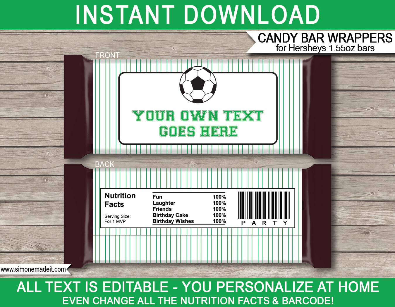 Soccer Hershey Candy Bar Wrappers Template Personalized Candy Bars