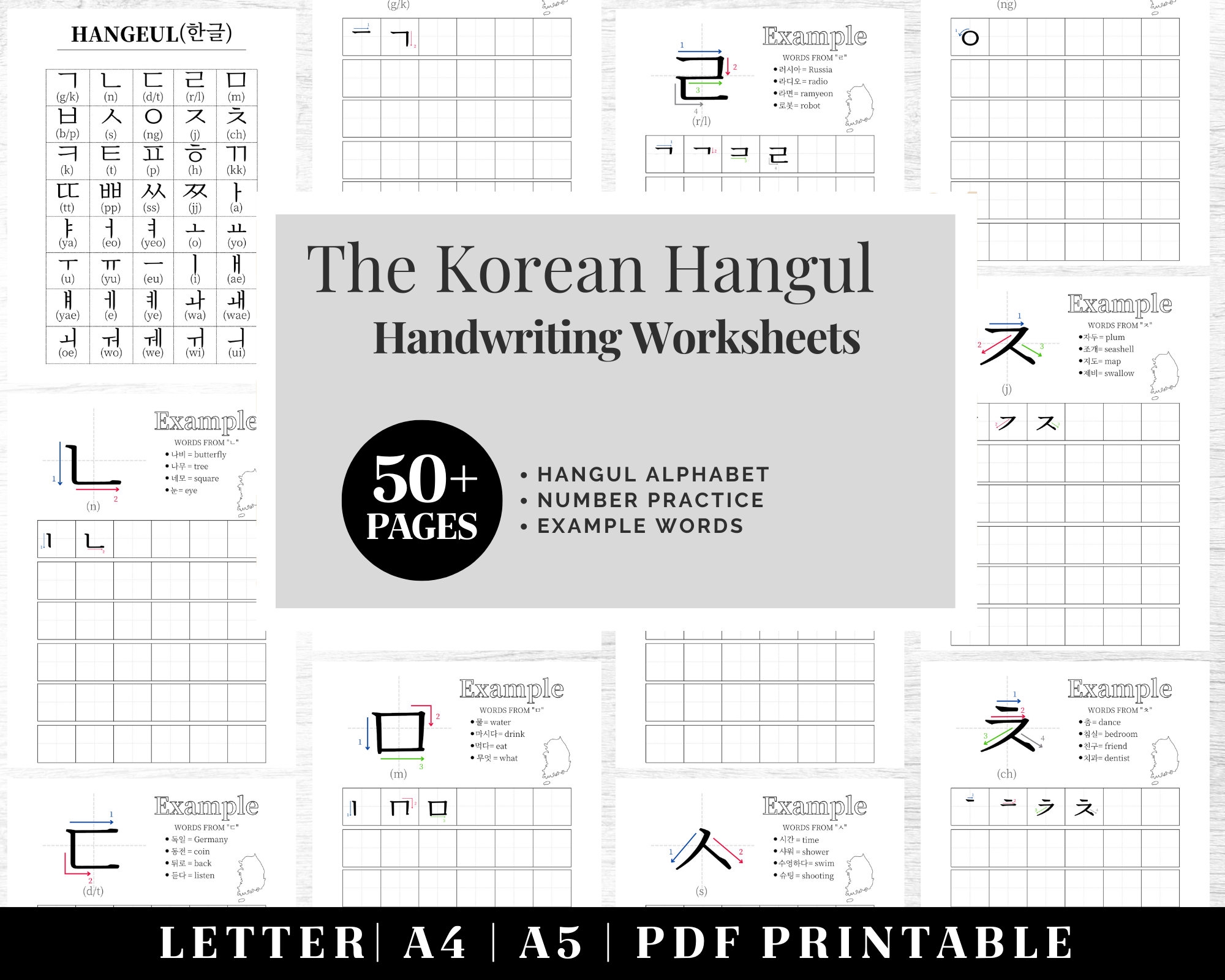 Hangul Practice Sheets Complete Korean Alphabet Worksheets Lettering Workbook Printable Instant Download Etsy