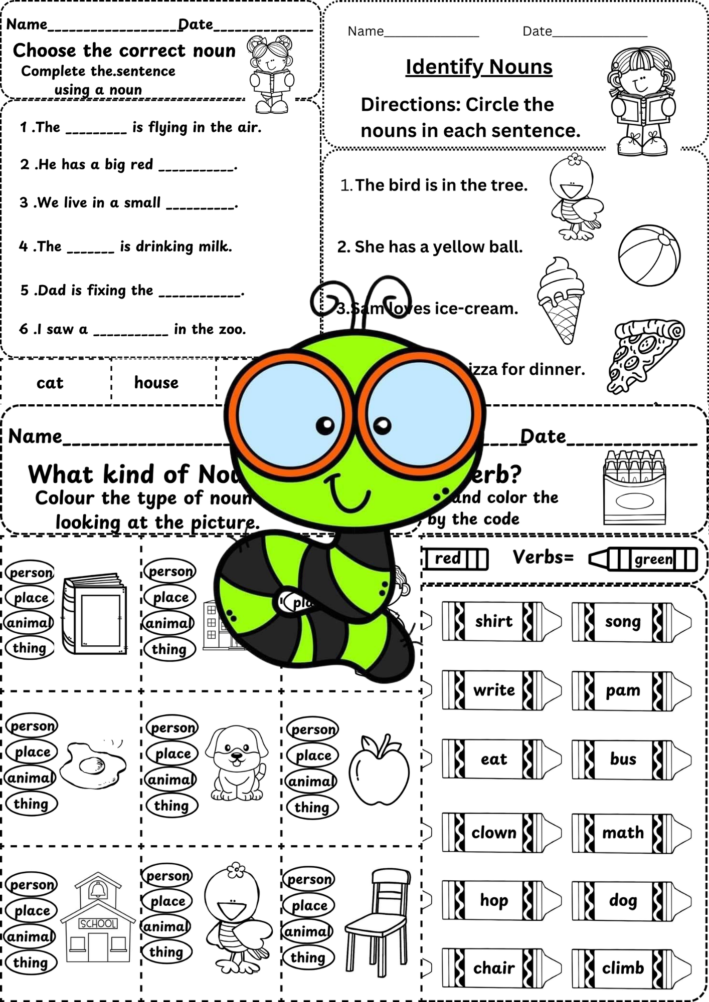 Grade 1 Nouns Worksheets No Prep 17 Printables Nouns Worksheets Packet