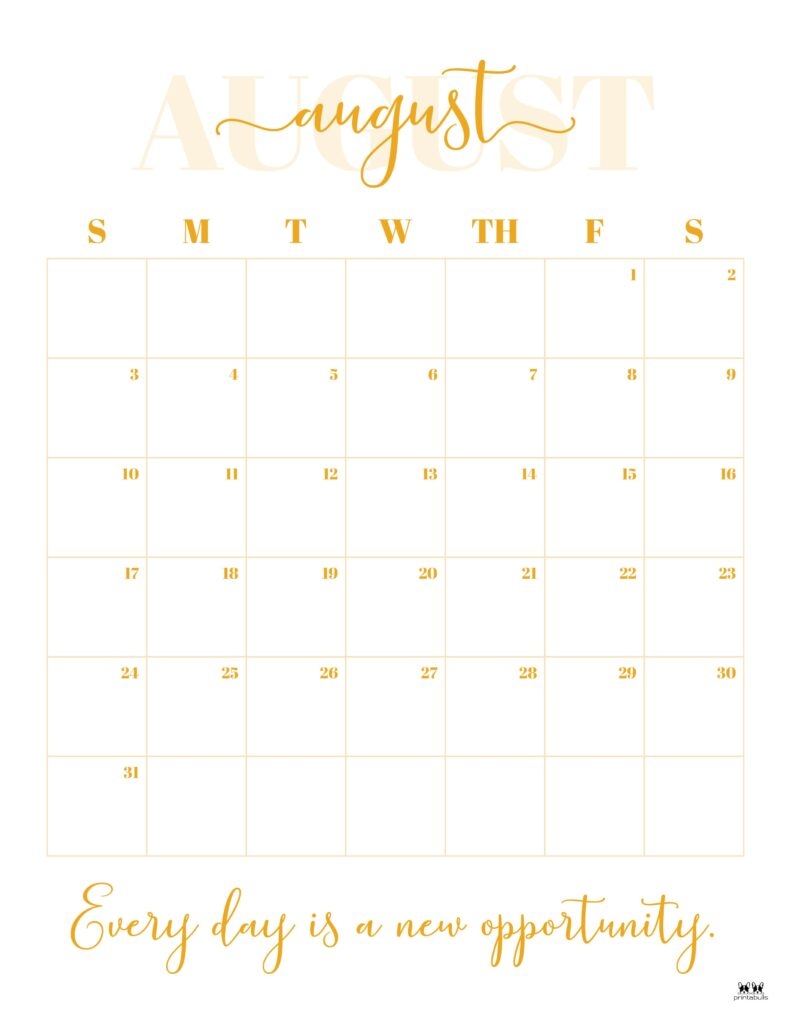 August 2025 Calendars 107 FREE Printables Printabulls