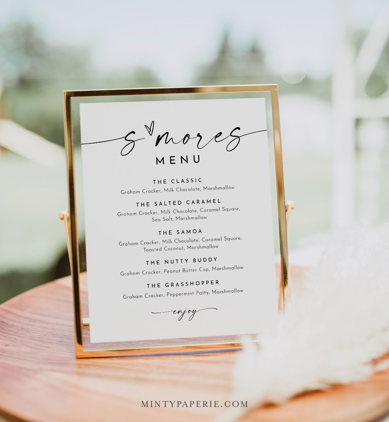 S mores Menu Printable Smores Bar Sign Minimalist Wedding S mores Station 100 Editable Template Instant Download Templett 0034W 70S