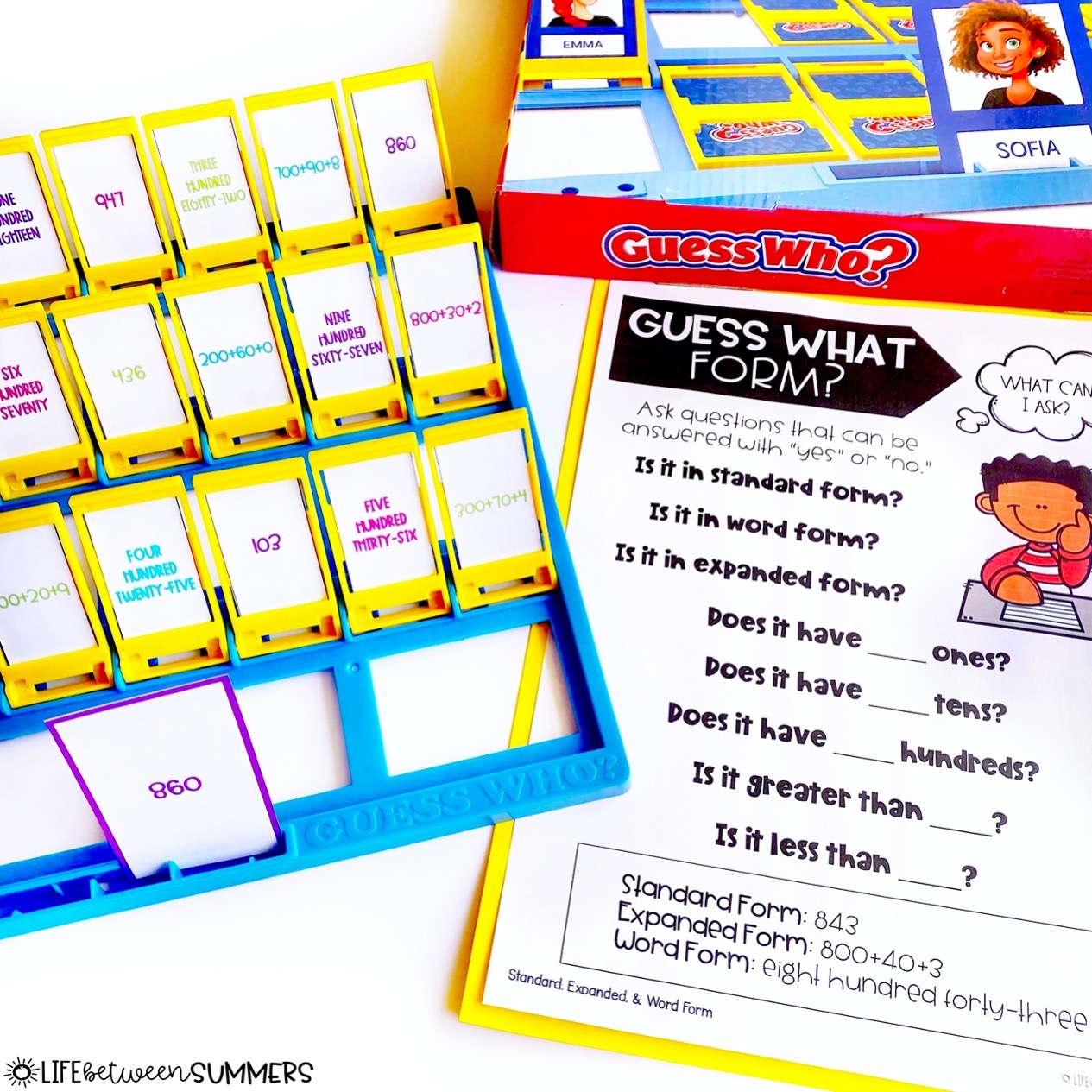GUESS WHO Math Games For Standard Form Expanded Form And Word Form Life Between Summers
