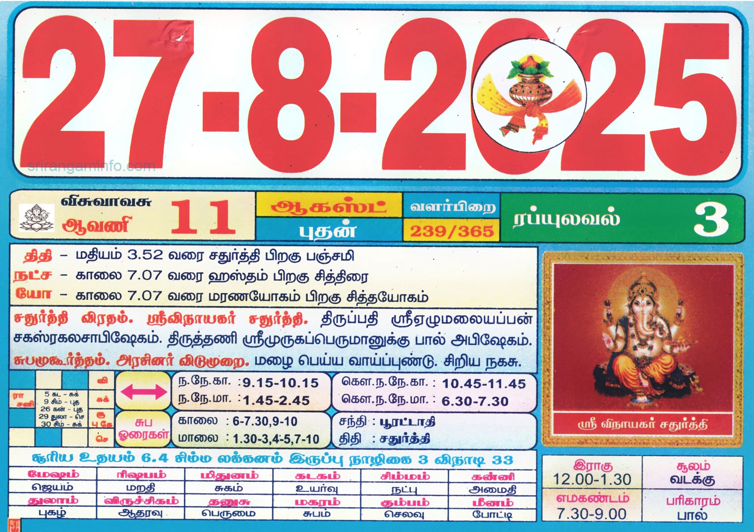 Tamil Calendar 2025 August
