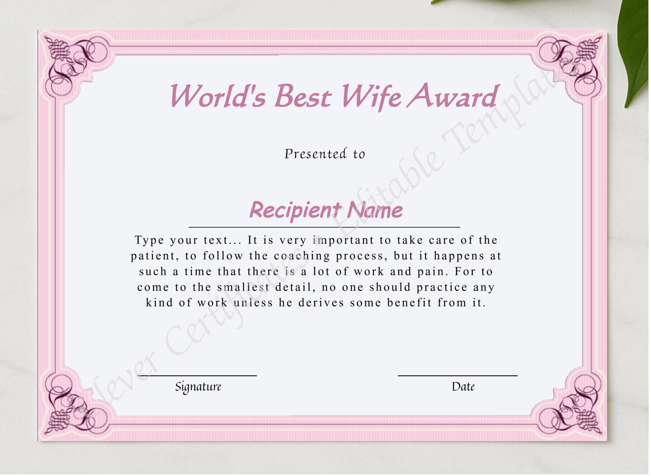 In conclusion, printable certificates are a thoughtful and customizable gift idea for your wife. Show her how much she means to you with a personalized certificate that reflects your love and appreciation. It’s a simple yet meaningful gesture that will surely make her day!