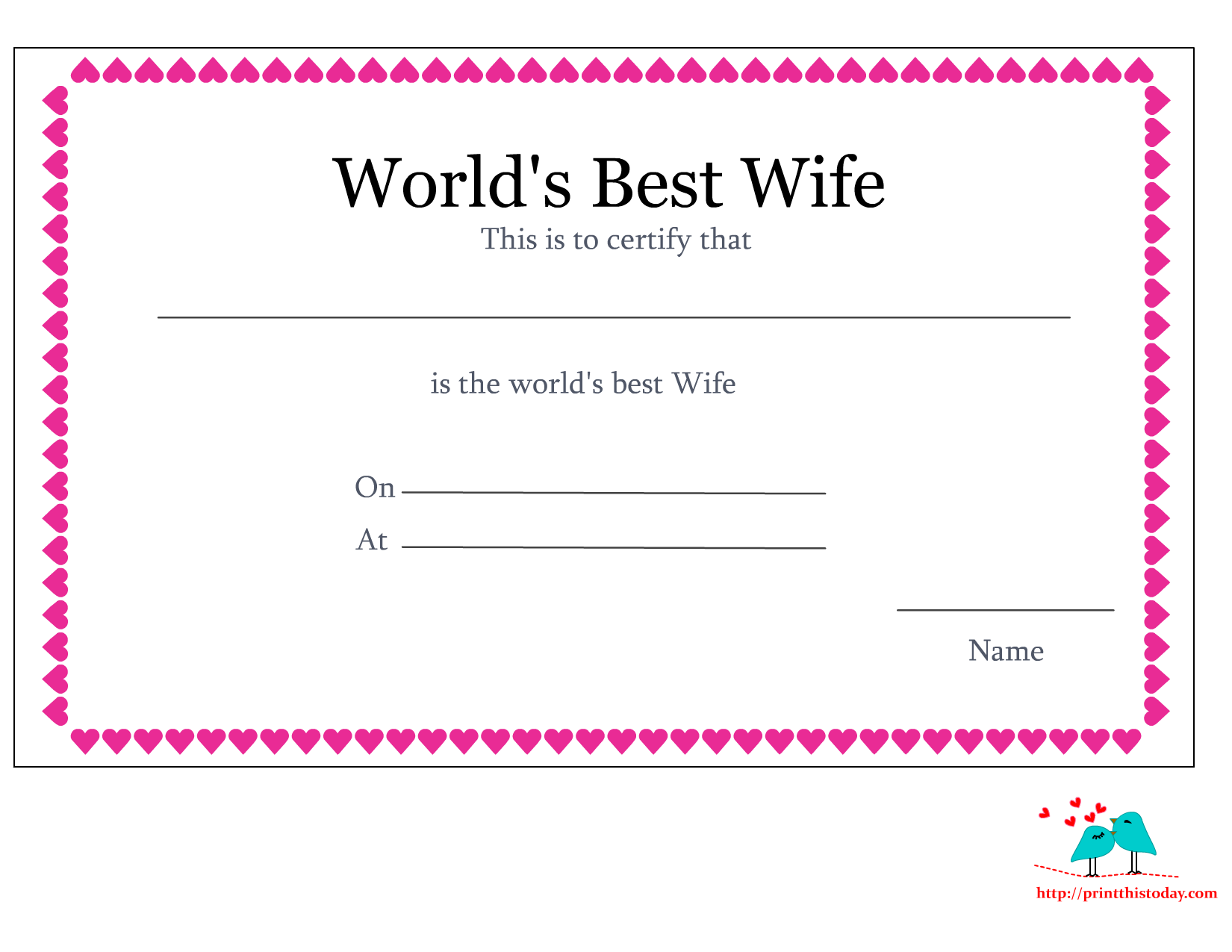 To Wife Printable Certificates