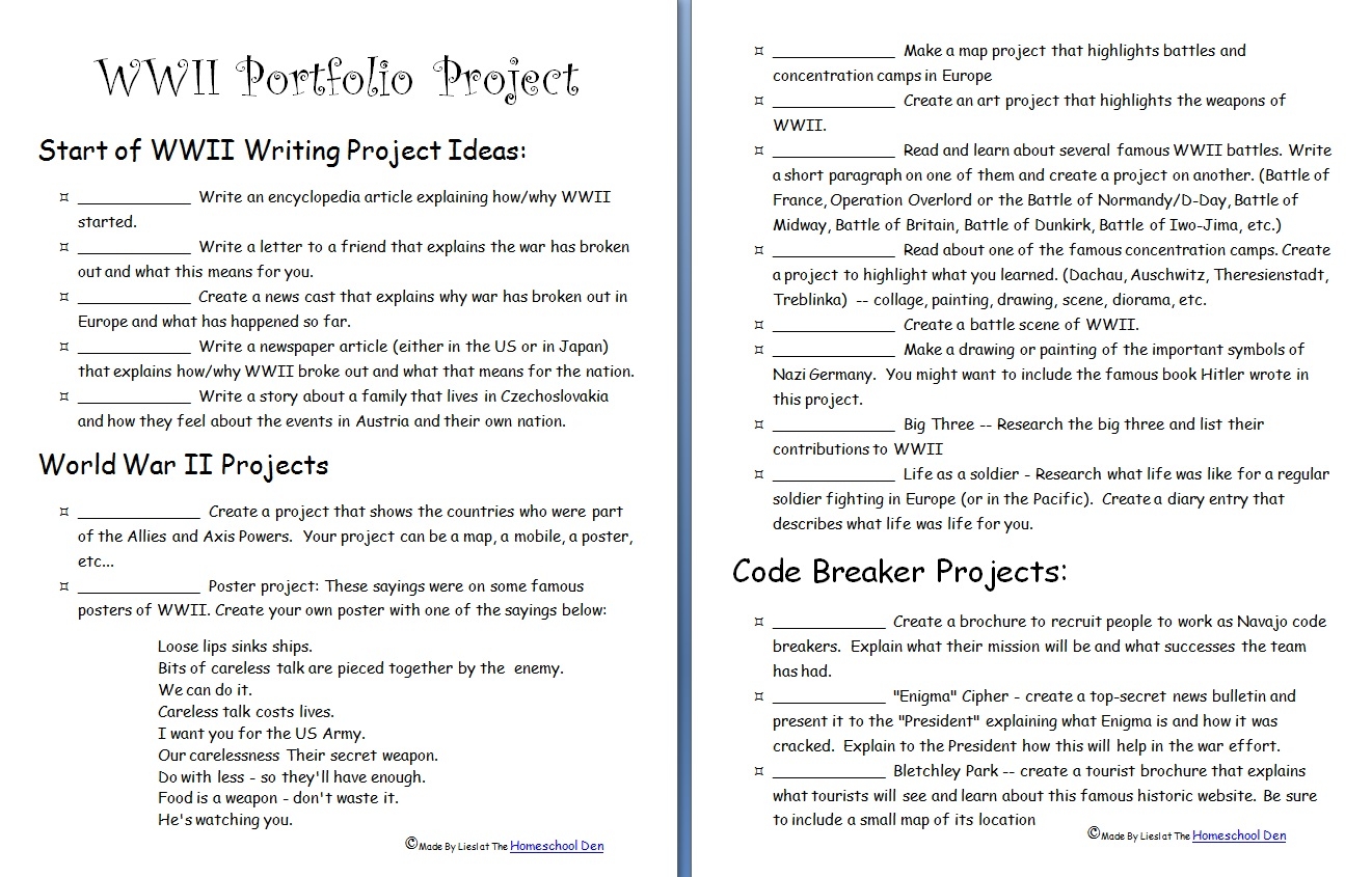 WWII Portfolio Project Homeschool Den